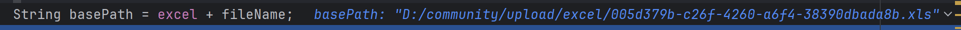 String basePath = excel + fileName; // 构建Excel文件的完整路径