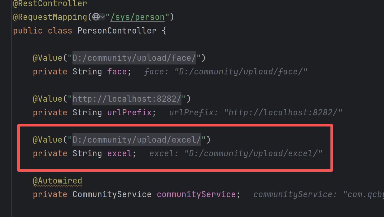 目录的值在yaml配置文件中配置了,通过@Value注入: