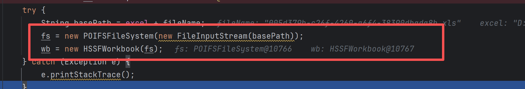 POIFSFileSystem fs = null; // POI文件系统对象,用于处理Excel文件