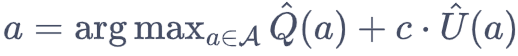 从选平均收益最大的动作 -> 加上U选上限(分位数)最大的动作,Q(a) -> Q(a) + U(a)