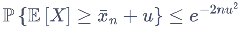 霍夫丁不等式,期望高于某范围的概率 不超过 ***;令等式右侧为一个 很小的常数阈值概率 p。
