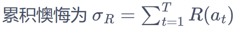 定义 regret 后悔值为 当前决策与最优决策Q* (那个实际上奖励概率最大的杆子)的差异。