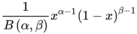 Beta 分布如下,正比于 α-1 次得到奖励,β-1次未得到奖励。