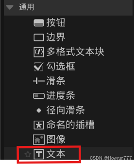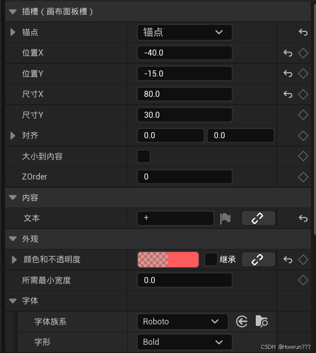- 制作十字准星:在蓝图中添加画板, 然后再添加文本组件,用 "+" 符号作为十字准星的显示内容。