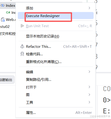 编译成功之后,点击index.aspx右键执行Redesigner