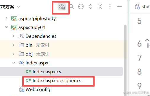 再次就行就可以生成Index.aspx.designer.cs,点击显示所有文件包含到项目中
