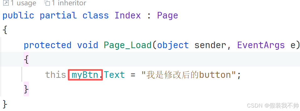 <asp:Button runat="server" ID="myBtn" Text="我是按钮"/>