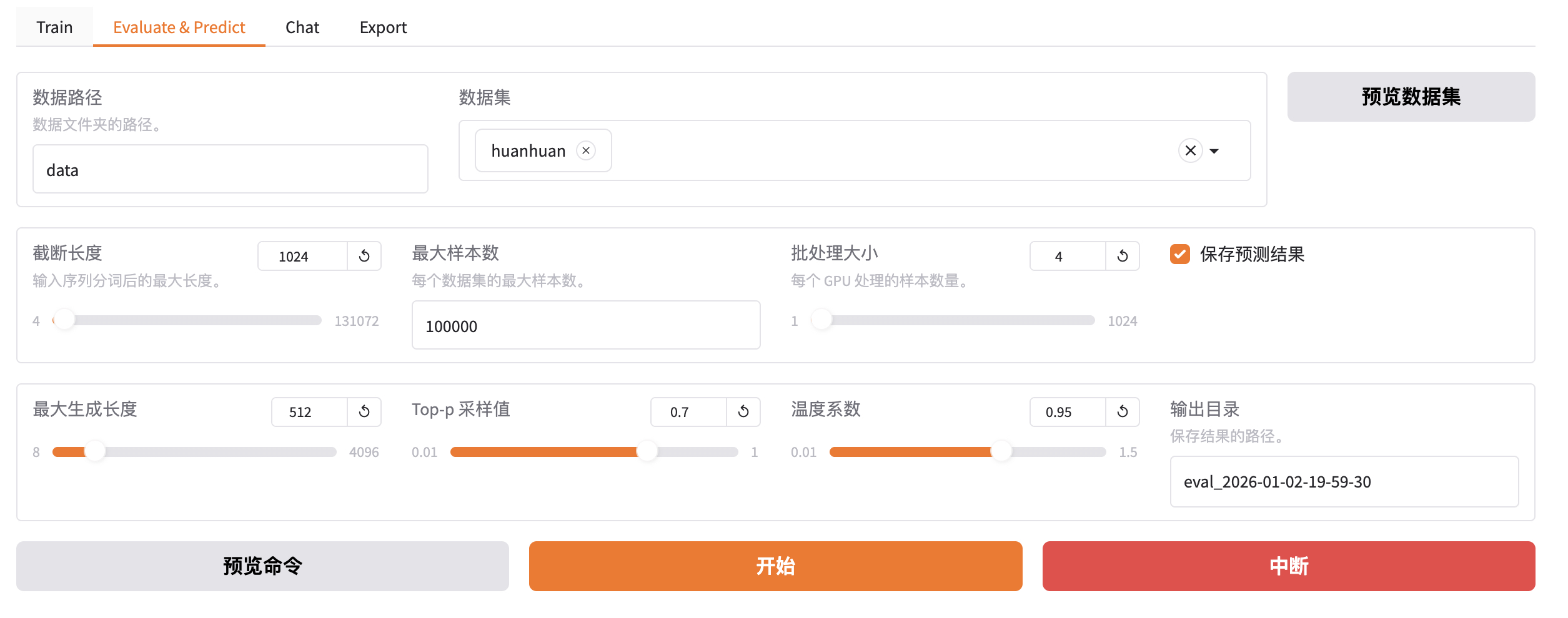 - max_samples:每个数据集采样多少用于预测对比。