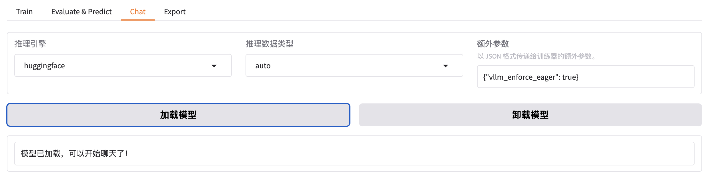如果想切换回微调之前的模型,只需先卸载模型,选择想要的 Checkpoint,然后再加载模型即可。