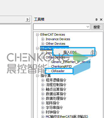 - 右侧工具箱中右键EtherNet/IP Devices,导入设备EDS