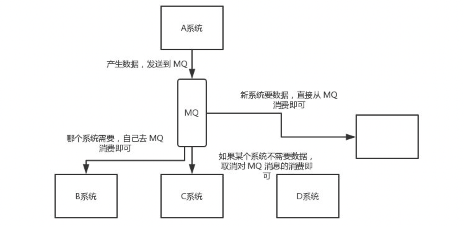 以电商应用为例,应用中有订单系统、库存系统、物流系统、支付系统。用户创建订单后,如果耦合调用库存系统、物流系统、支付系统,任何一个子系统出了故障,都会造成下单操作异常。当转变成基于消息队列的方式后,系统间调用的问题会减少很多,比如物流系统因为发生故障,需要几分钟来修复。在这几分钟的时间里,物流系统要处理的内存被缓存在消息队列中,用户的下单操作可以正常完成。当物流系统恢复后,继续处理订单信息即可,中单用户感受不到物流系统的故障,提升系统的可用性。