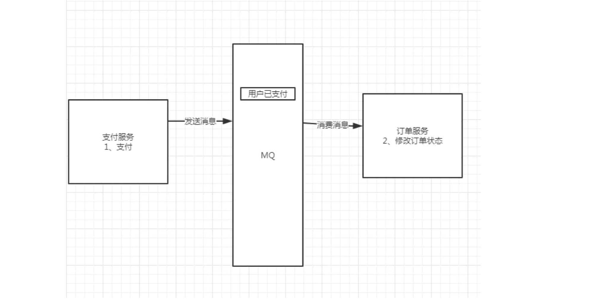 以订单服务为例,传统的方式为单体应用,支付、修改订单状态、创建物流订单三个步骤集成在一个服务中,因此这三个步骤可以放在一个jdbc事务中,要么全成功,要么全失败。而在微服务的环境下,会将三个步骤拆分成三个服务,例如:支付服务,订单服务,物流服务。三者各司其职,相互之间进行服务间调用,但这会带来分布式事务的问题,因为三个步骤操作的不是同一个数据库,导致无法使用jdbc事务管理以达到一致性。而 MQ 能够很好的帮我们解决分布式事务的问题,有一个比较容易理解的方案,就是二次提交。基于MQ的特点,MQ作为二次提交的中间节点,负责存储请求数据,在失败的情况可以进行多次尝试,或者基于MQ中的队列数据进行回滚操作,是一个既能保证性能,又能保证业务一致性的方案,如下图所示:
