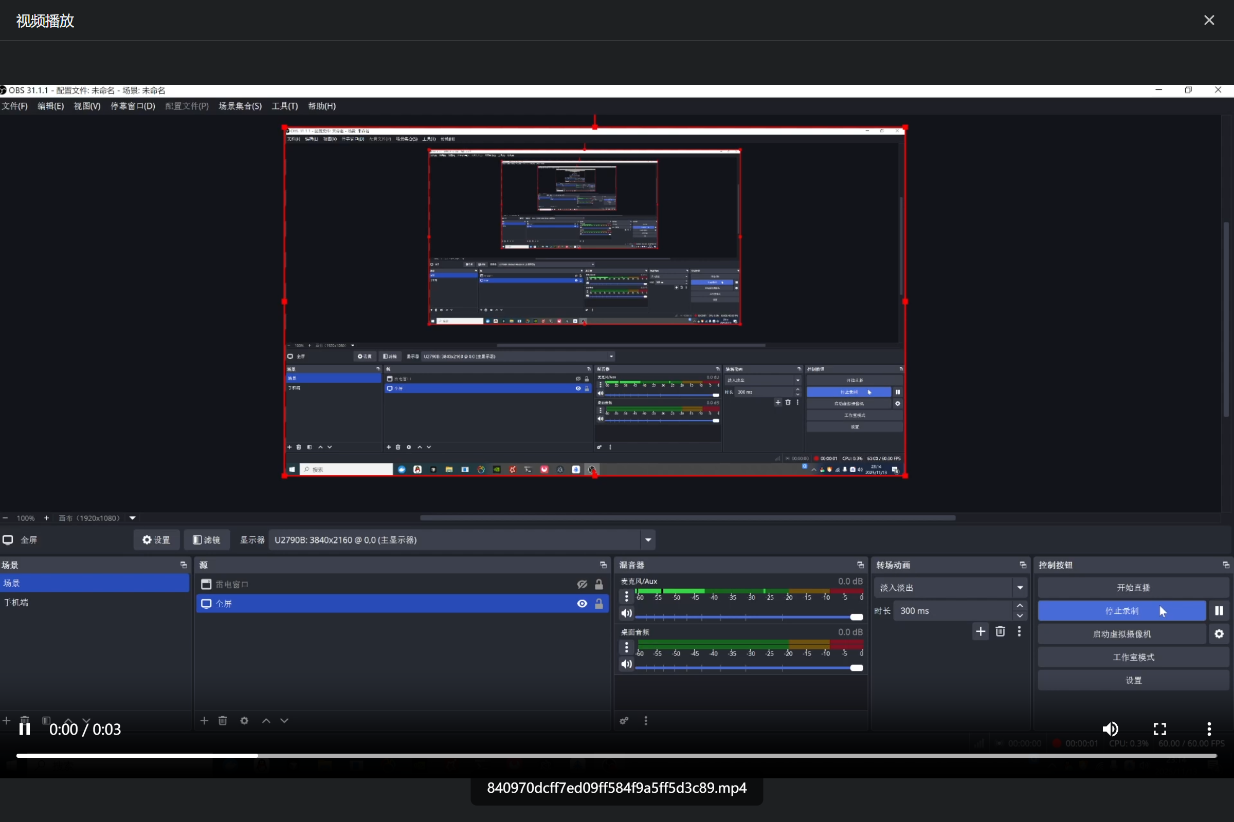 视频消息播放界面,支持播放、暂停、全屏等操作。