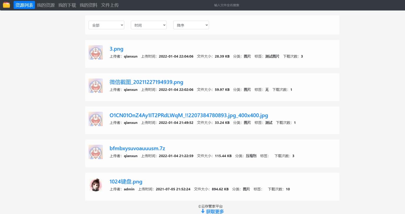 2、用户可控的模块有以下几部分:资源列表、我的资源、我的下载、我的资料以及文件上传;