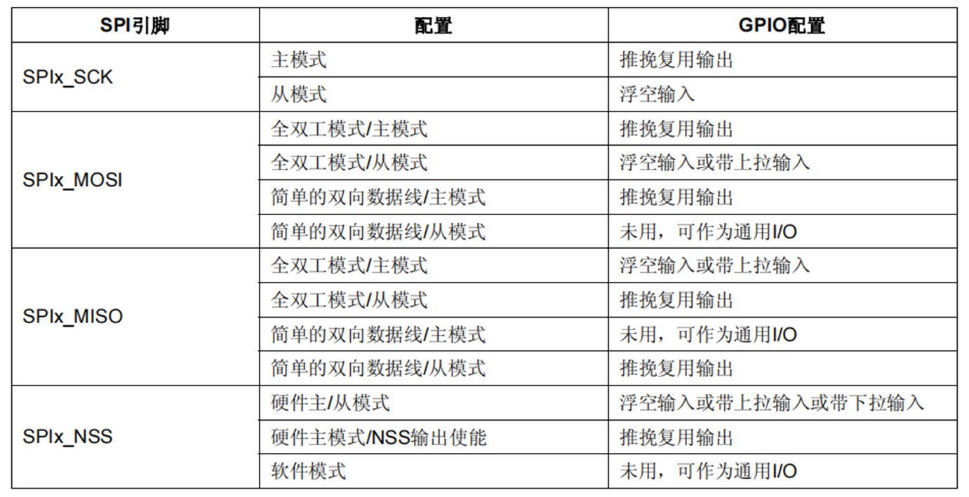 | SPI模块 | 默认引脚(不复用/重映射前) | 所在章节 |