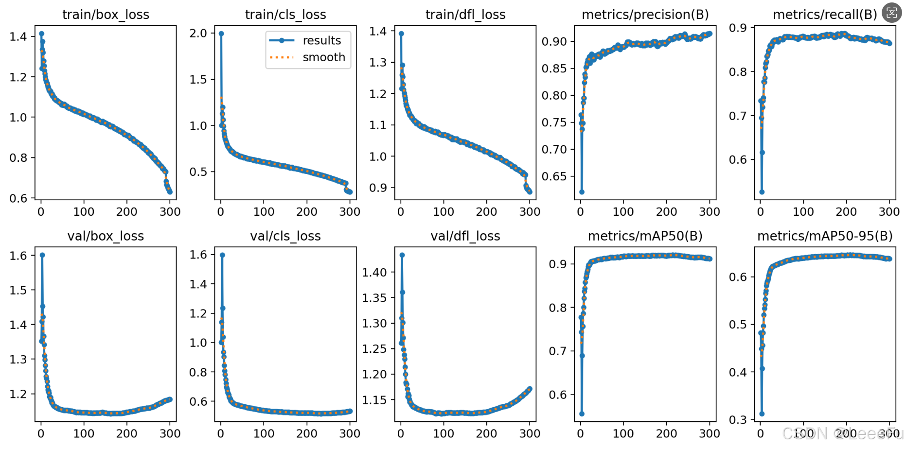 在深度学习中,我们通常用损失函数下降的曲线来观察模型训练的情况,避免过拟合和欠拟合现象。在训练结束后我们可以在run/detect中进行查看,结果如下所示:
