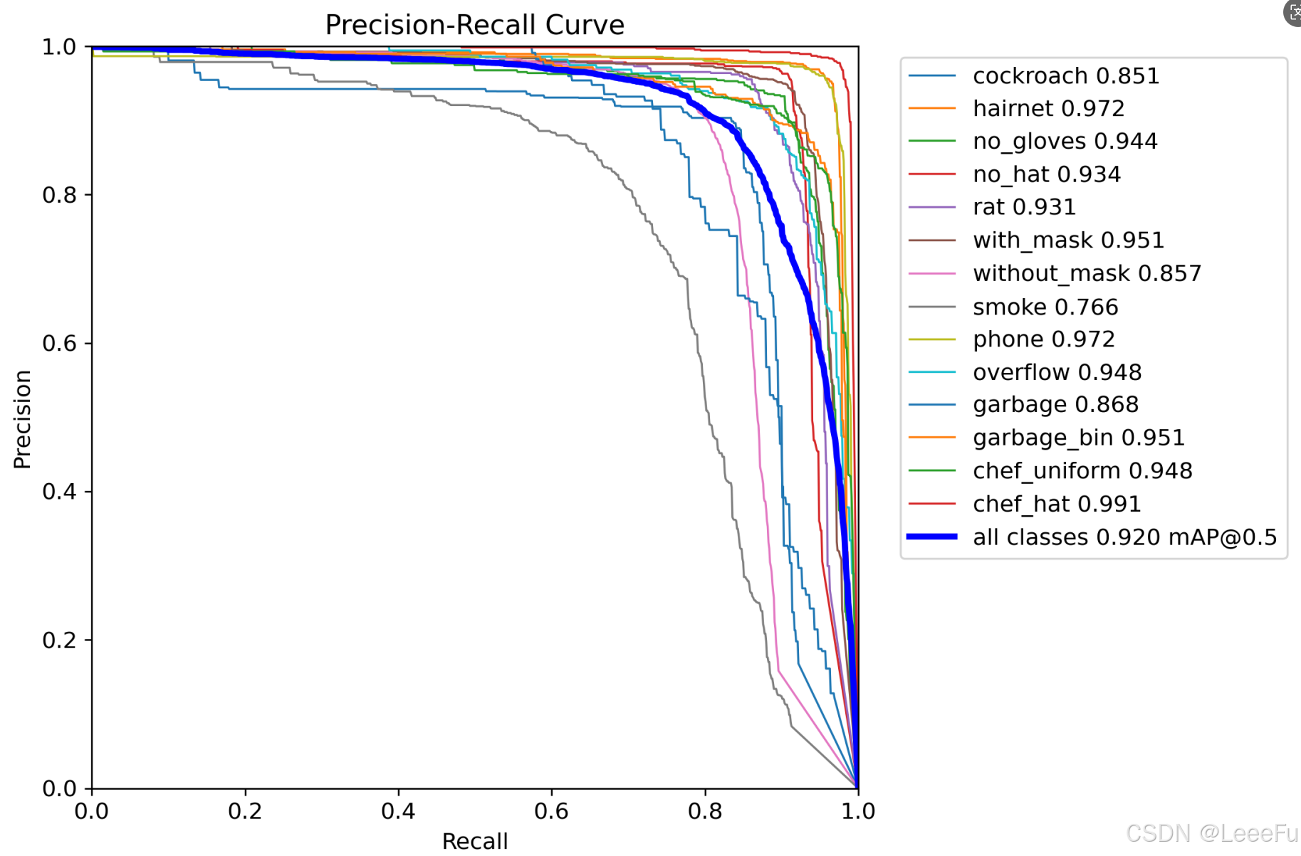 类别设置:14类别 ['cockroach','hairnet', 'no_gloves', 'no_hat','rat','with_mask','without_mask','smoke','phone','overflow','garbage','garbage_bin','chef_uniform','chef_hat']