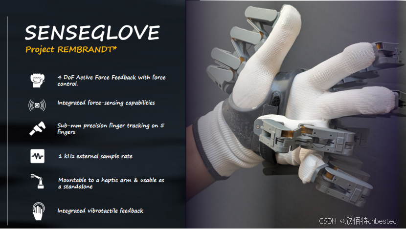 在机器人遥操作、灵巧操控及模仿学习等科研领域,精准触觉反馈与高精度动作追踪是核心需求。SenseGlove 推出新品 ------SenseGlove R1 外骨骼力反馈手套(以下简称 SenseGlove R1),凭借主动力反馈、毫米级追踪、多维触觉反馈等核心优势,为科研用户提供贴合实际操作场景的解决方案,推动机器人相关研究实现效率与精度双重提升。
