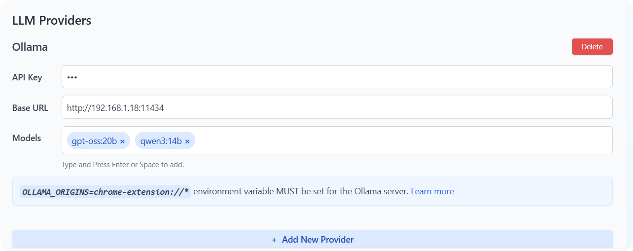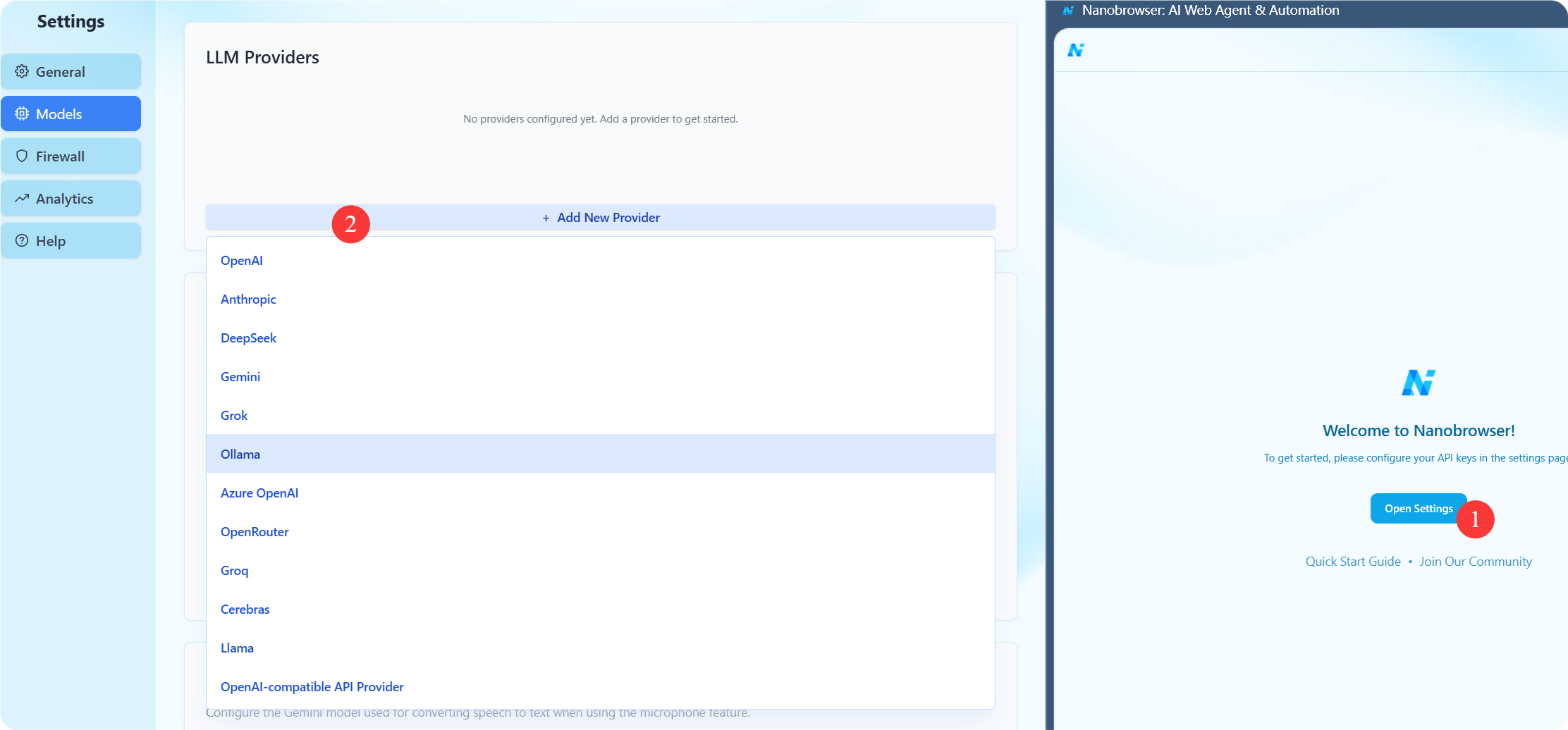 nanobrowser文件夹; - 配置 API Key 和模型即可使用