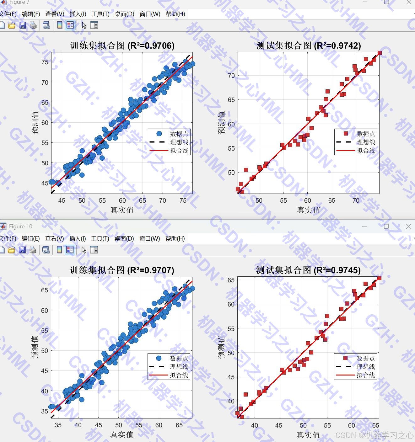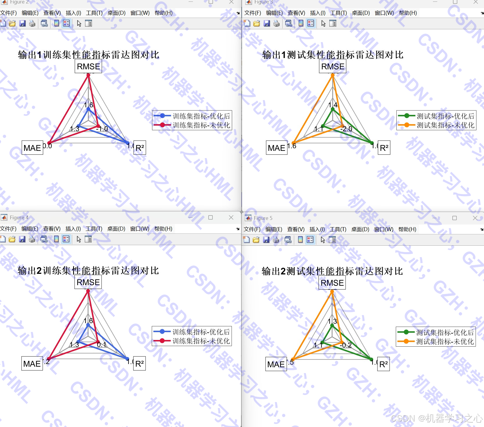 - 可视化分析:包括优化过程曲线、雷达图、拟合图、误差对比、特征重要性分析等。