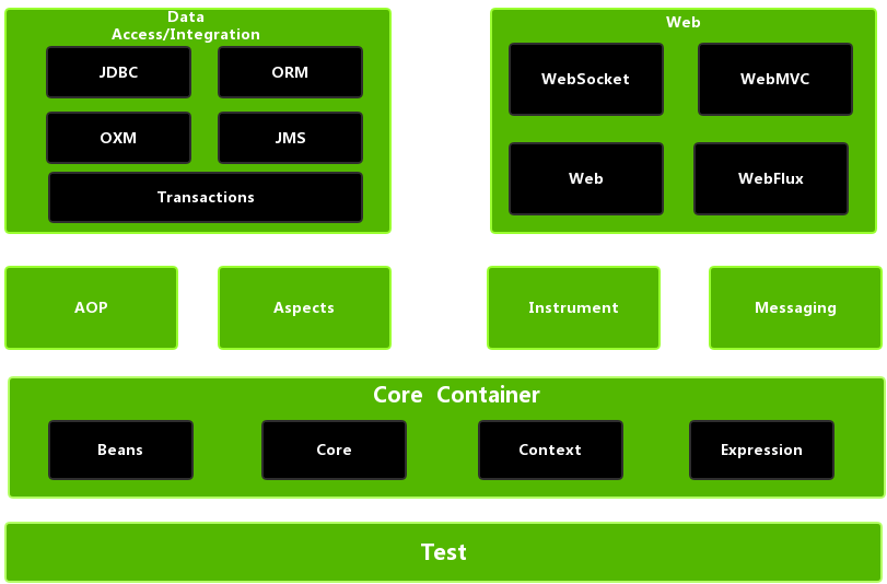 上图中包含了 Spring 框架的所有模块,这些模块可以满足一切企业级应用开发的需求,在开发过程中可以根据需求有选择性地使用所需要的模块。下面分别对这些模块的作用进行简单介绍。