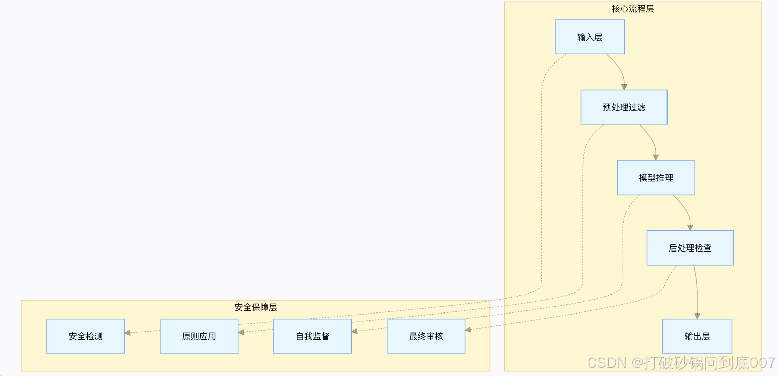 Claude的安全对齐采用多层级架构,确保从输入到输出的全过程安全。