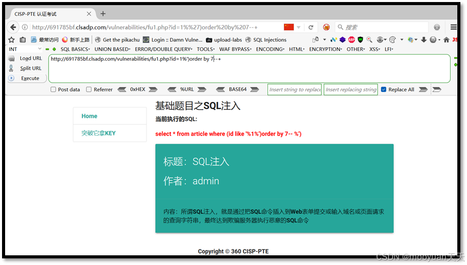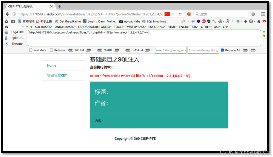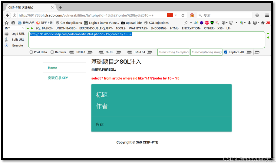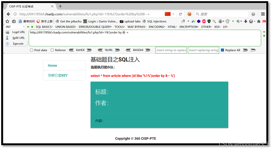 本文详细记录了CISP-PTE靶场SQL注入关卡的渗透全流程。在渗透实战部分,通过3种方法实现。