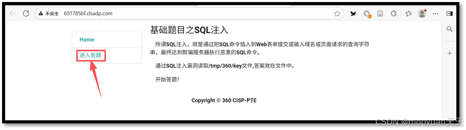 点击进入答题,进入到SQL注入答题页面,URL如下所示。