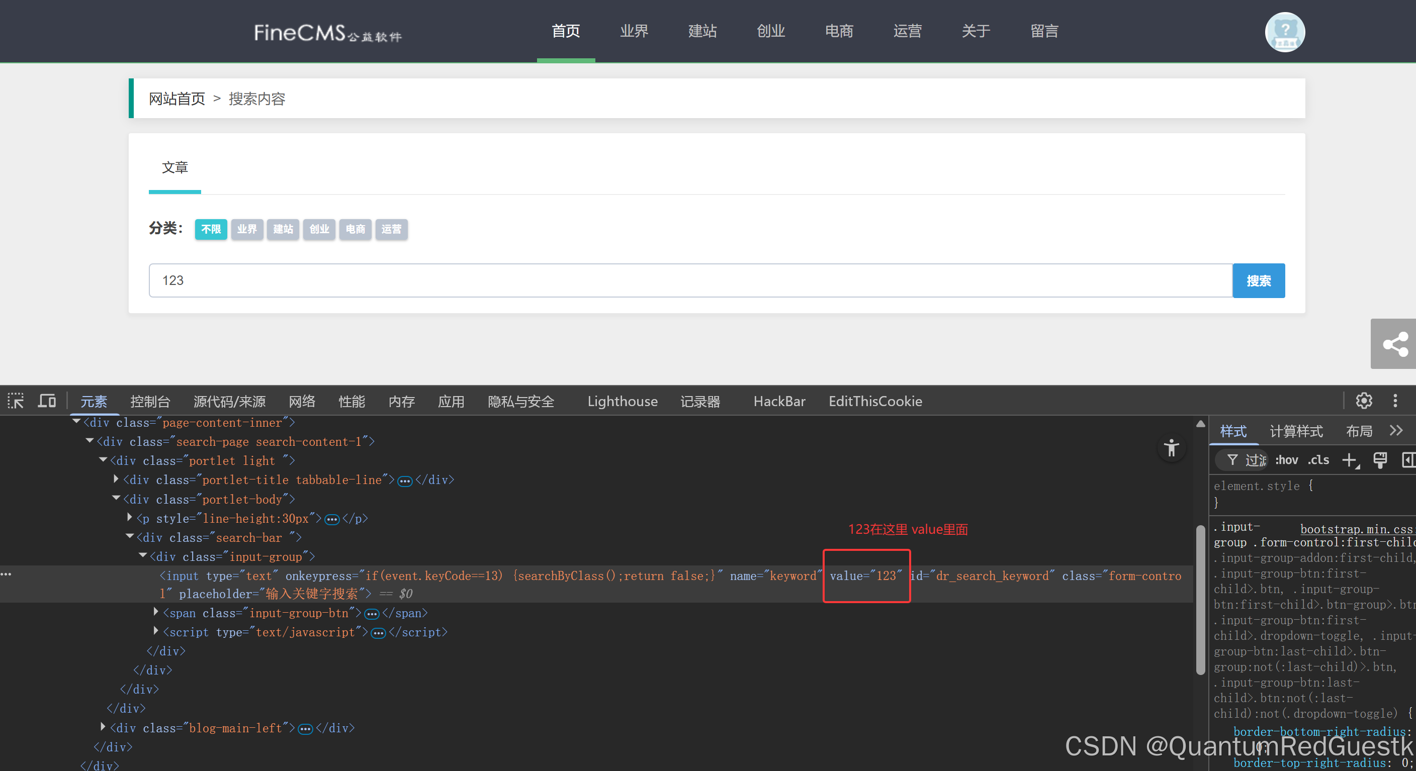 首先浏览一下全页,看见空位就注入,然后弹检查,看注入数据的返回位置。