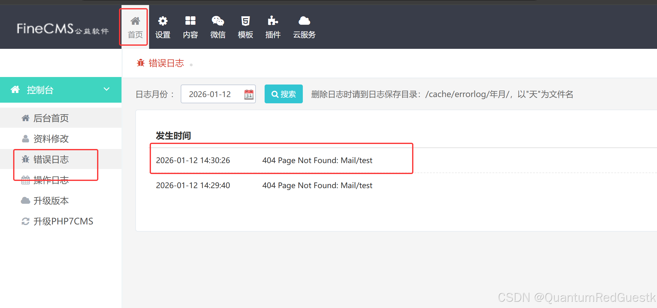 出现这个页面是正常的,根据POC讲解:这里其实插入了一段错误日志,需要到CMS的后台去查看。