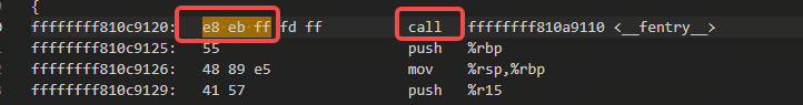 e8是call的操作吗,eb是段内直接短转的操作码。配合后面的offset就是跳转到__fentry__。