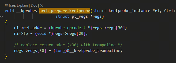 从上面 2.3.3 可以看到kretprobe的注册只是修改函数入口的地方的二进制,那么kretprobe是如何实现函数返回时的跳转呢?