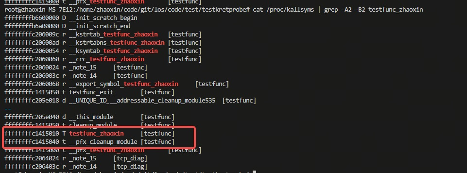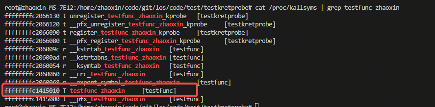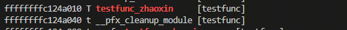 cat /proc/kallsyms | grep testfunc_zhaoxin