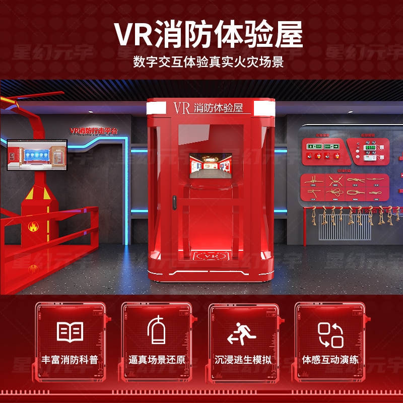 VR消防体验屋 作为一种新型的消防培训工具,利用虚拟现实技术模拟真实的火灾场景,为学员提供沉浸式的火灾应急演练体验。通过不断优化的虚拟环境、互动操作和实时反馈,它能够高效提升学员的消防安全意识和应急反应能力。随着技术的不断进步,VR消防体验屋将在更多行业和领域中得到广泛应用,为社会的消防安全作出更大的贡献。