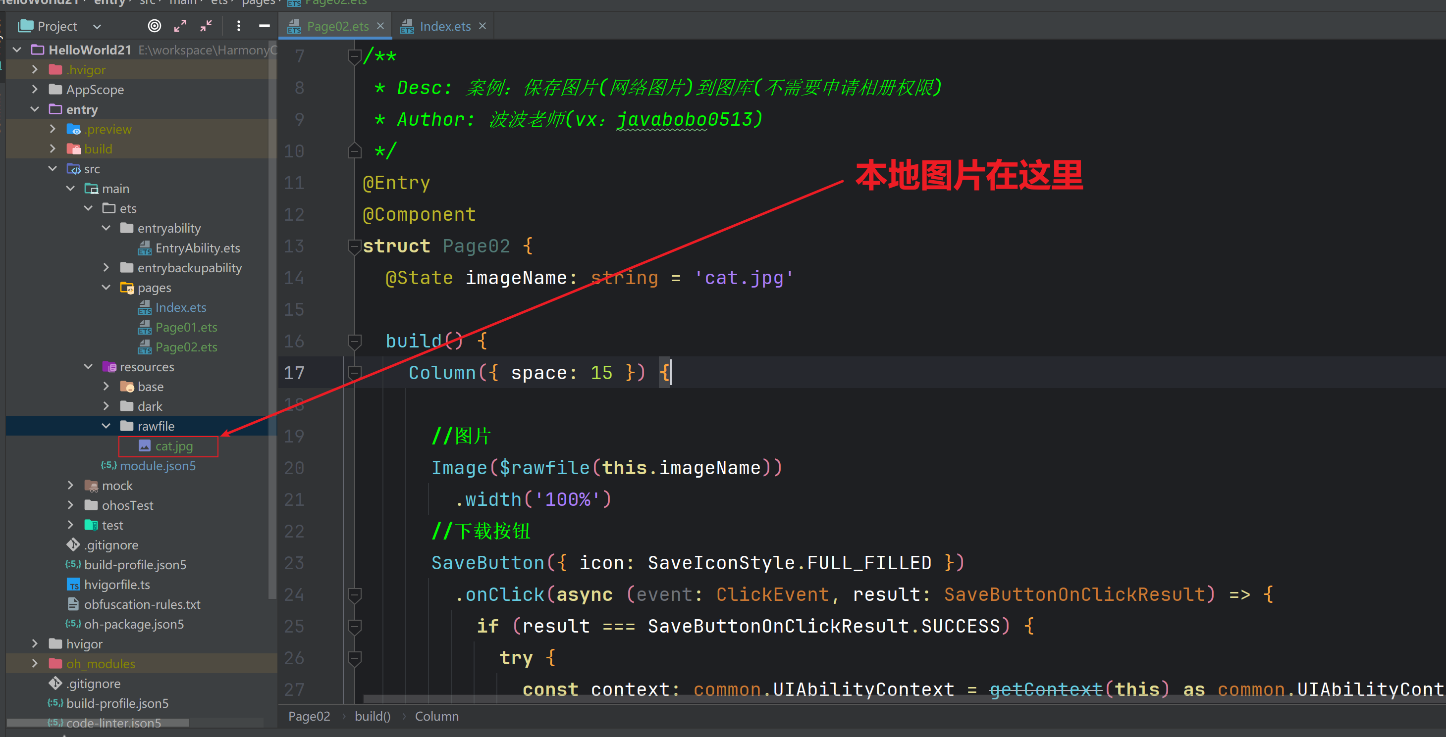 * Desc: 案例:保存网络图片到图库(需要申请相册权限)