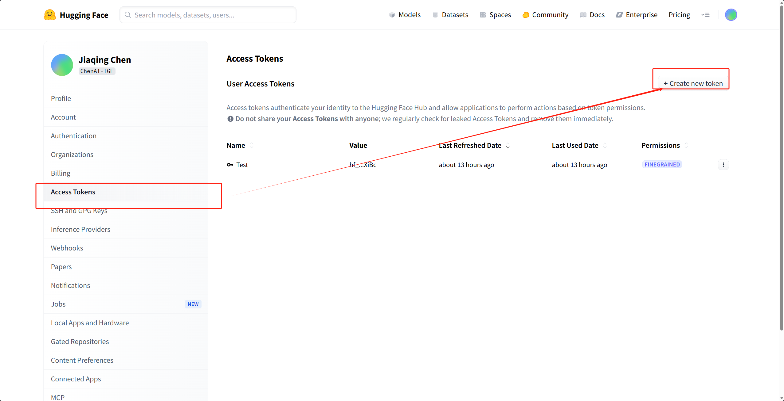 在 Settings -> Tokens 创建一个名为