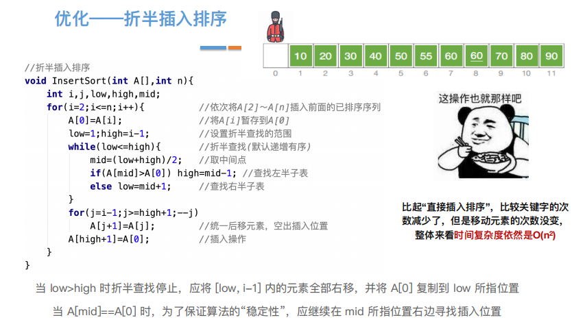用折半查找(二分法) ,在 "已排序序列" 中快速找到当前元素的插入位置;