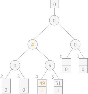 从初始文件中读入关键字为 49 的记录,调整败者树如下图所示: