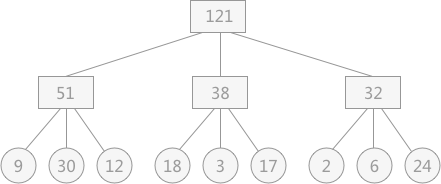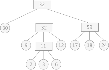 例如,现有通过置换选择排序算法所得到的 9 个初始归并段,其长度分别为:9,30,12,18,3,17,2,6,24。在对其采用 3-路平衡归并的方式时可能出现如图 1 所示的情况: