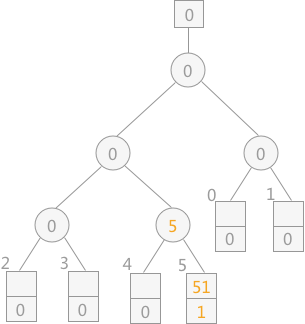 从初始文件中读入关键字为 51 的记录,自下往上调整败者树,如下图所示: