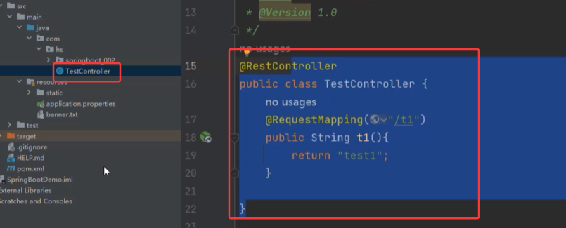 想要改变扫描路径,@SpringBootApplication(scanBasePackages="com.hs");