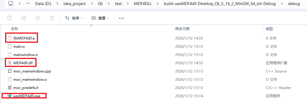 此时会在debug路径下生成.dll和.a文件