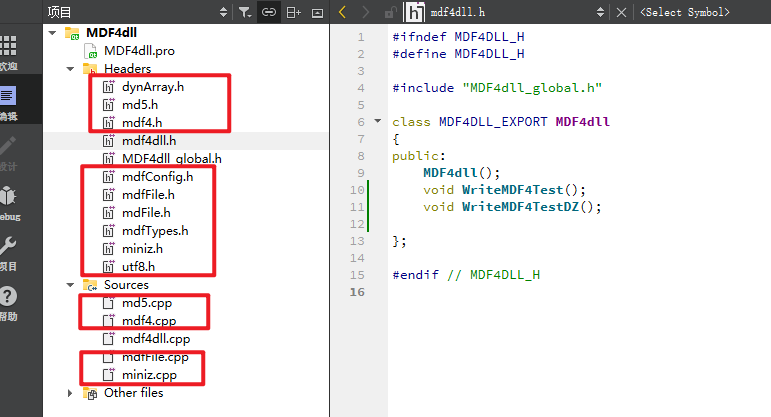 新建的文件,会生成.h/.cpp/_global.h文件,不要动这些文件,将原有项目代码迁移过来: