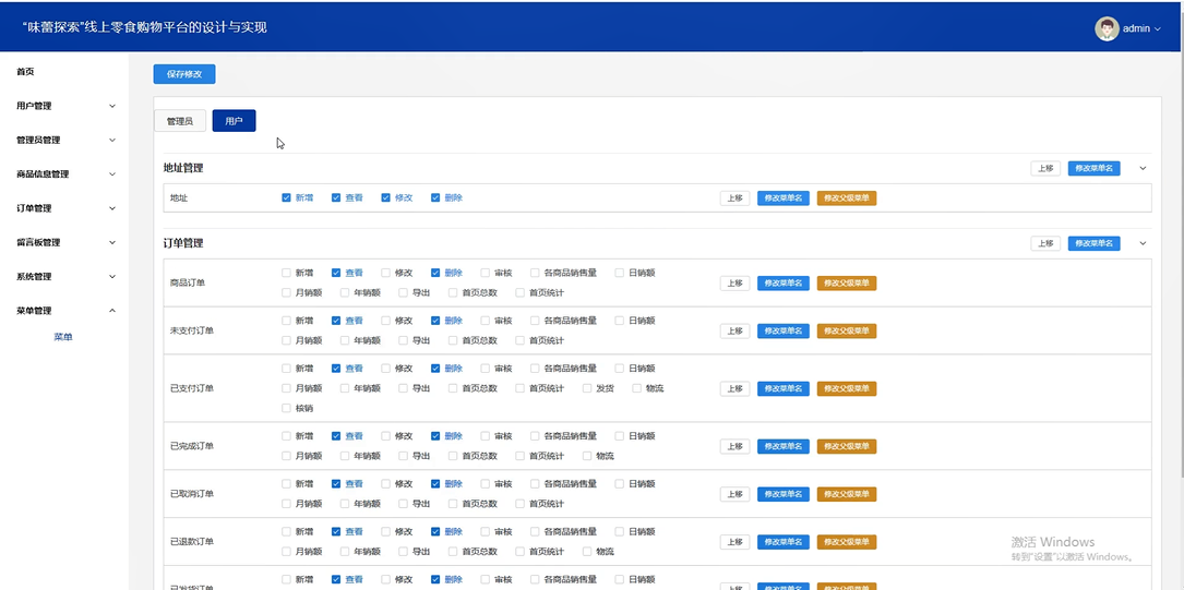 - 商品管理功能:管理商品分类(新增 / 修改 / 删除),维护商品信息(新增 / 编辑 / 删除商品名称、分类、图片、详情等);