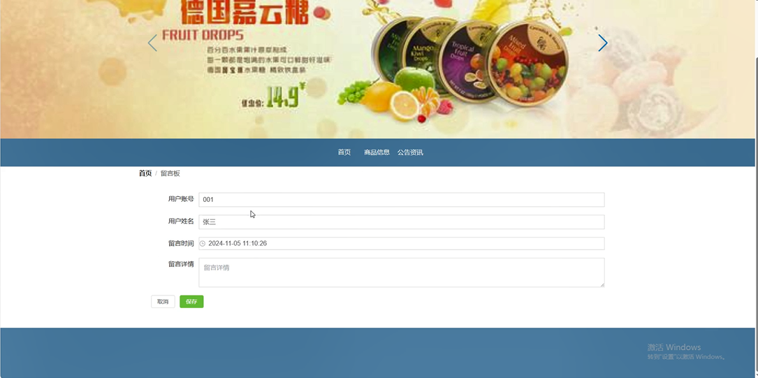 - 系统运营功能:管理留言板(回复 / 修改 / 删除用户留言),维护公告资讯,管理系统轮播图,配置用户与管理员端菜单功能。