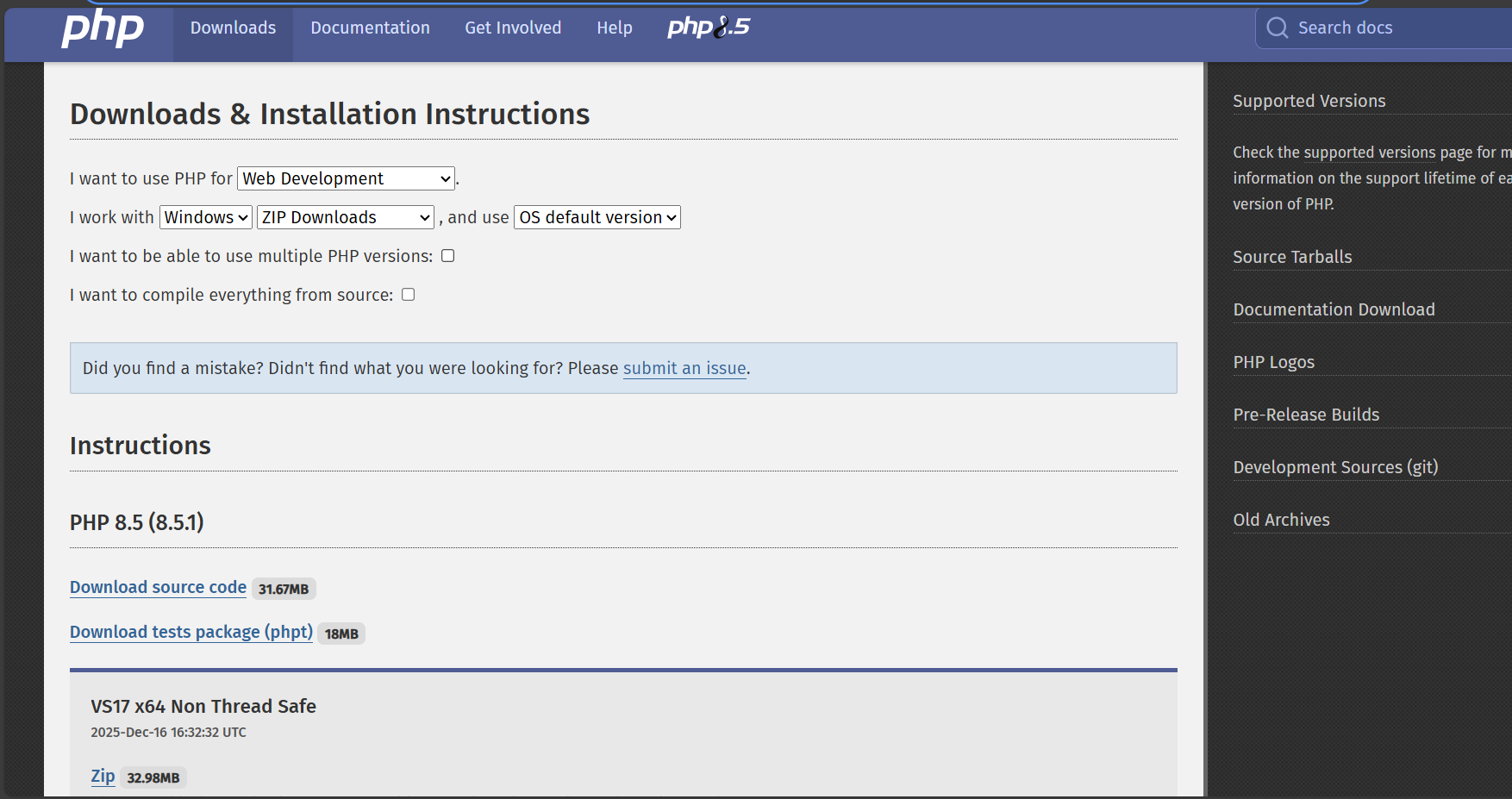在官网下载php对应的版本:PHP: Downloads
