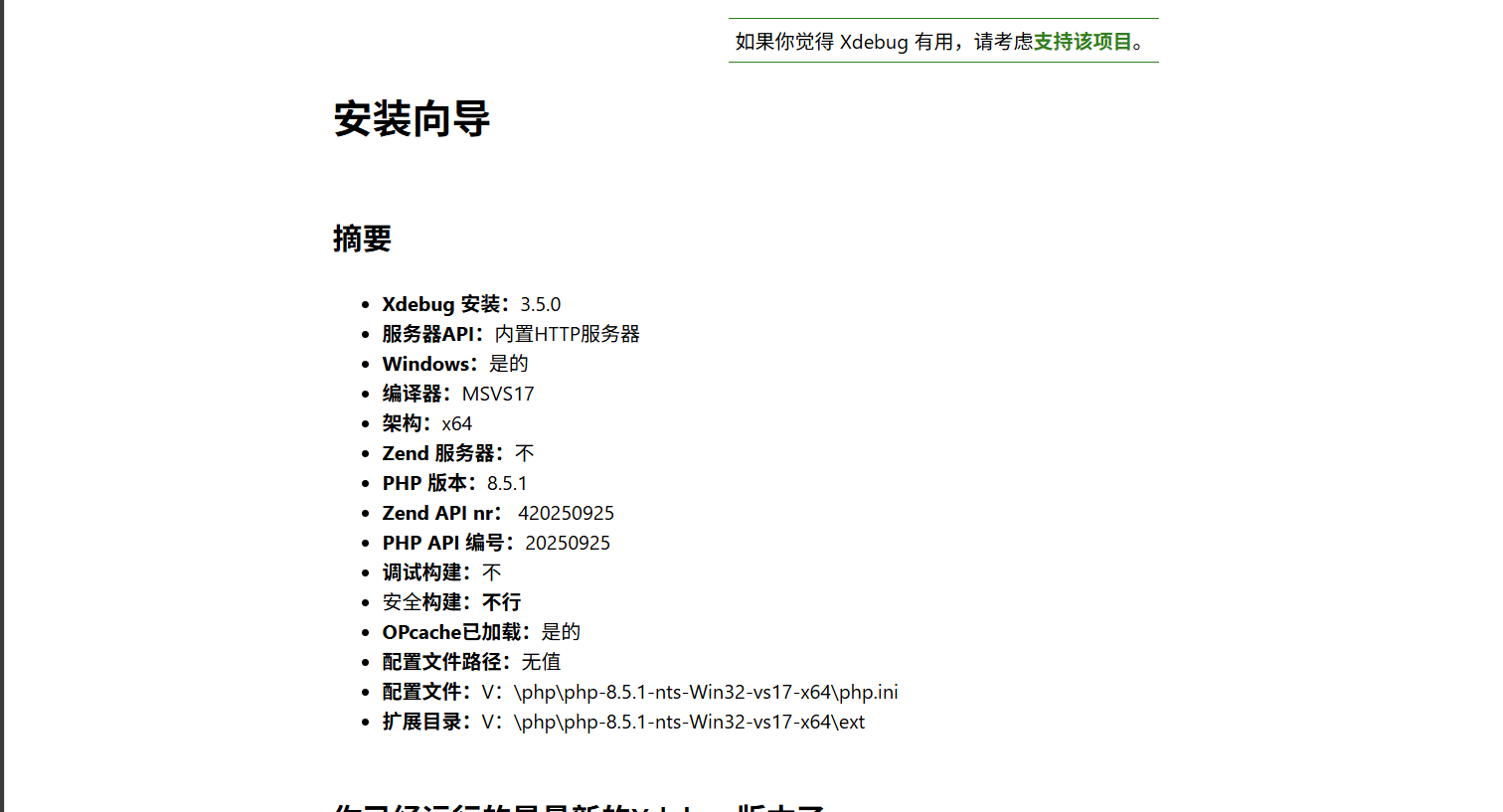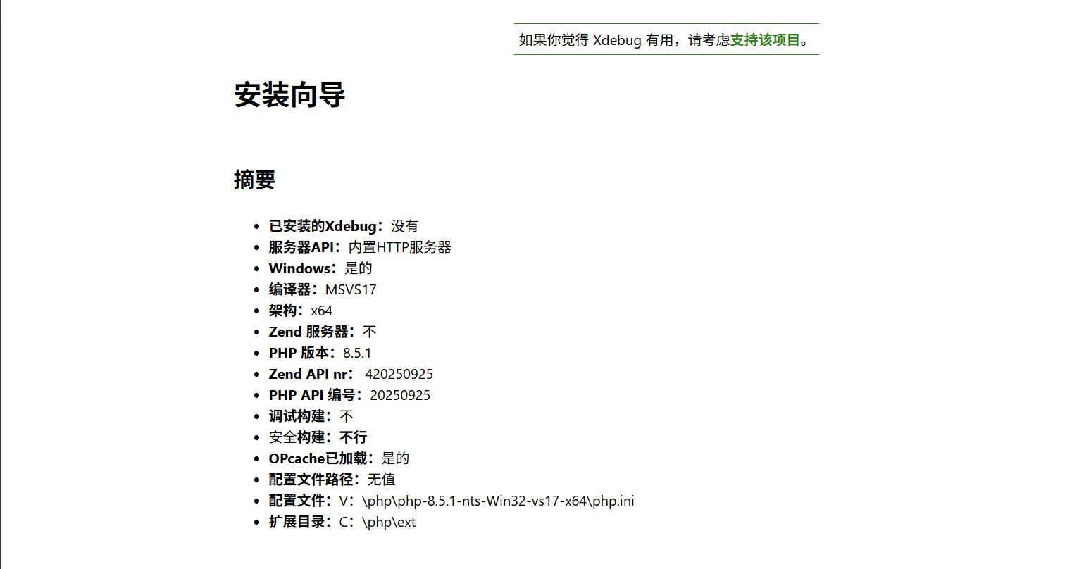 安装成功:测试显示会有xdebug的安装版本,有显示版本即安装成功