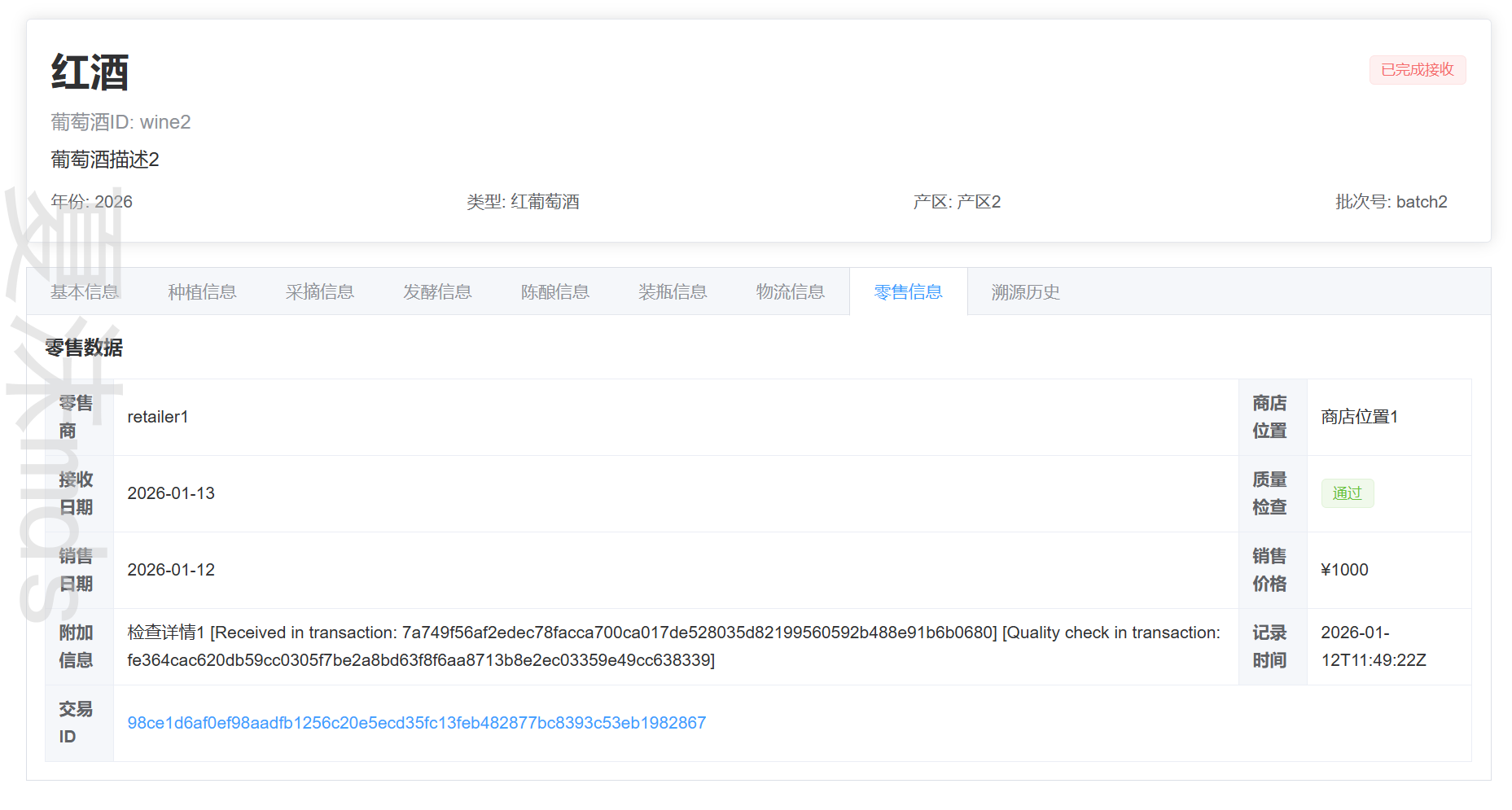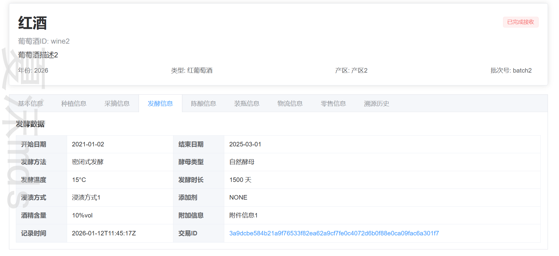 - 完整生命周期追踪:从葡萄种植到最终销售的全程记录