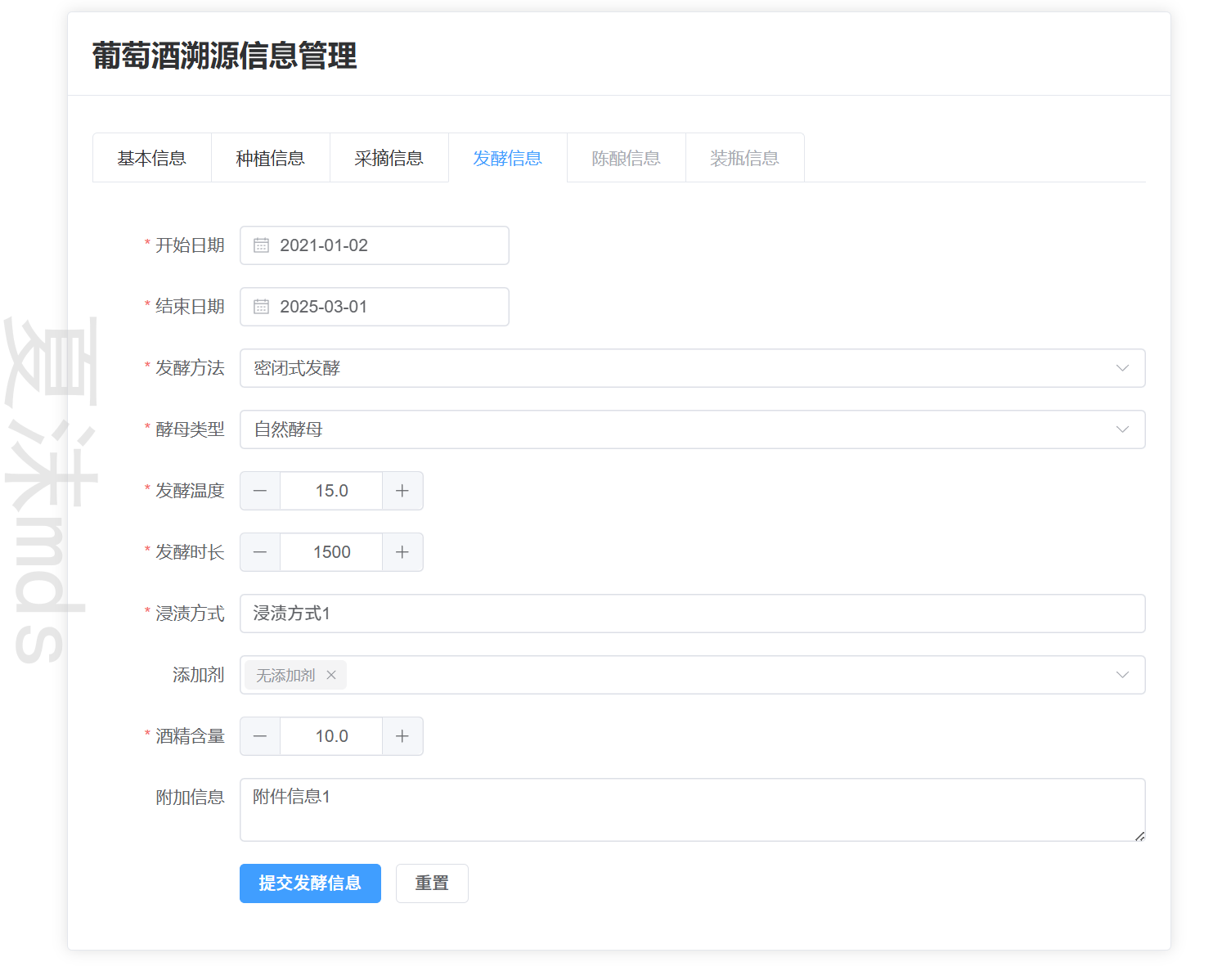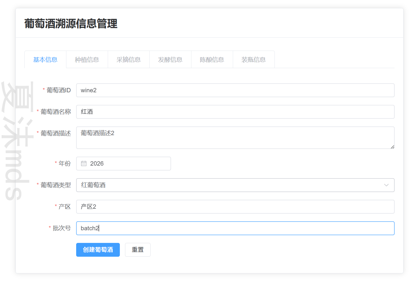 - 录入陈酿数据(橡木桶类型、陈酿时长等)