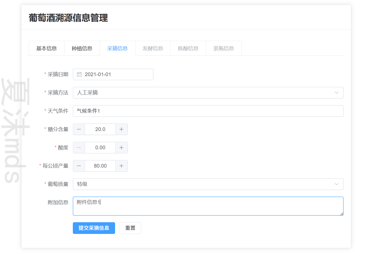 - 录入种植数据(葡萄园信息、品种、土壤等)